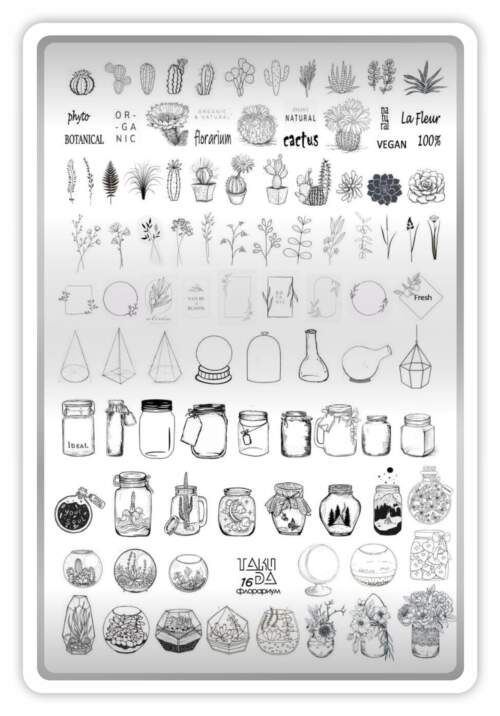 Stamping Plate DEMO Taki Da – 16 Plant Terrarium – Stamping-Schablone mit Demo-Sheet (mit Vorlagenblatt)