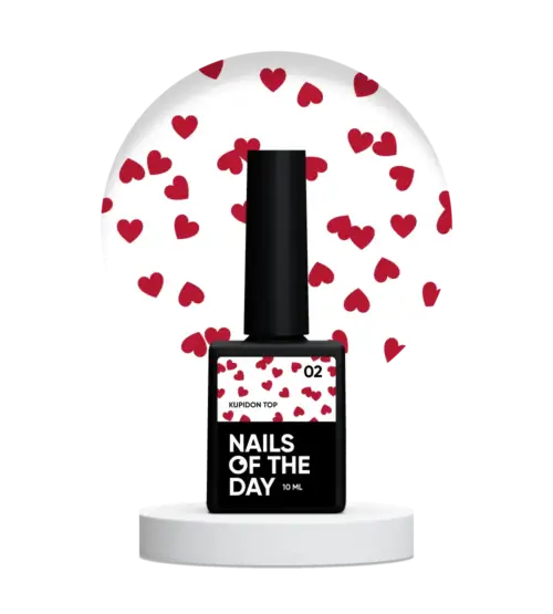 NAILSOFTHEDAY Kupidon top 02 – Top Coat mit burgunderfarbenen Herzchen ohne klebrige Schicht, 10 ml