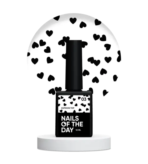 NAILSOFTHEDAY Kupidon top 03 – Top Coat mit schwarzen Herzchen ohne klebrige Schicht, 10 ml