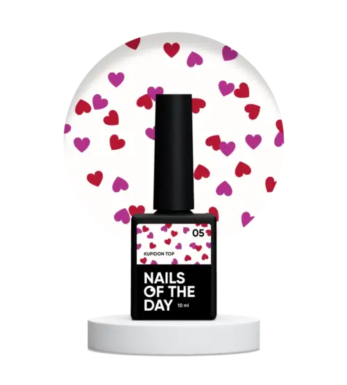 NAILSOFTHEDAY Kupidon top 05 – Top Coat mit roten und rosafarbenen Herzchen ohne klebrige Schicht, 10 ml