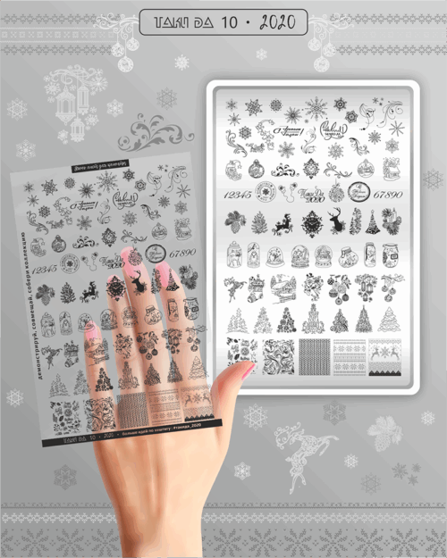 Stamping Plate DEMO Taki Da – 10 New Year – Stamping-Schablone mit Demo-Sheet (mit Vorlagenblatt)