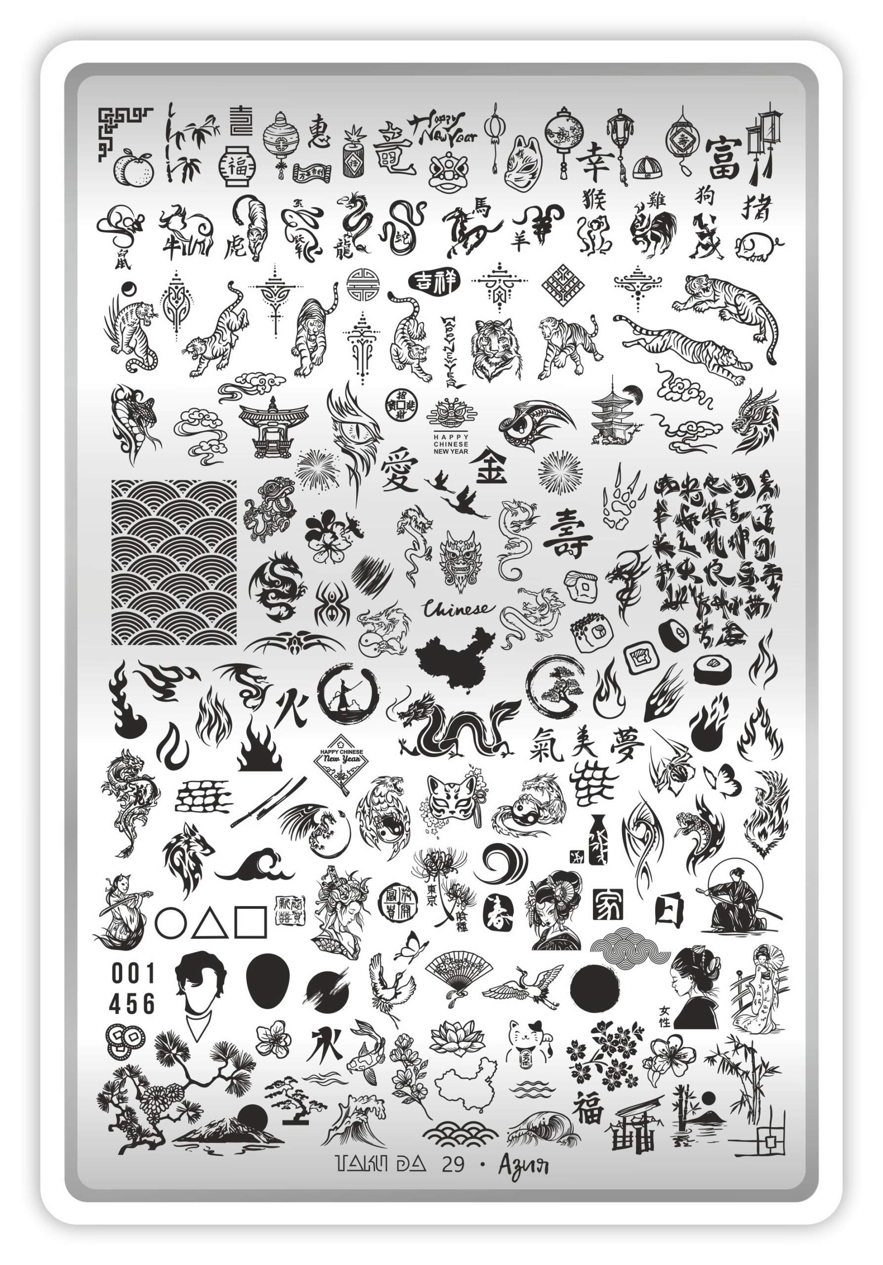 Stamping Plate DEMO Taki Da – 29 ASIA – Stamping-Schablone mit Demo-Sheet (mit Vorlagenblatt)